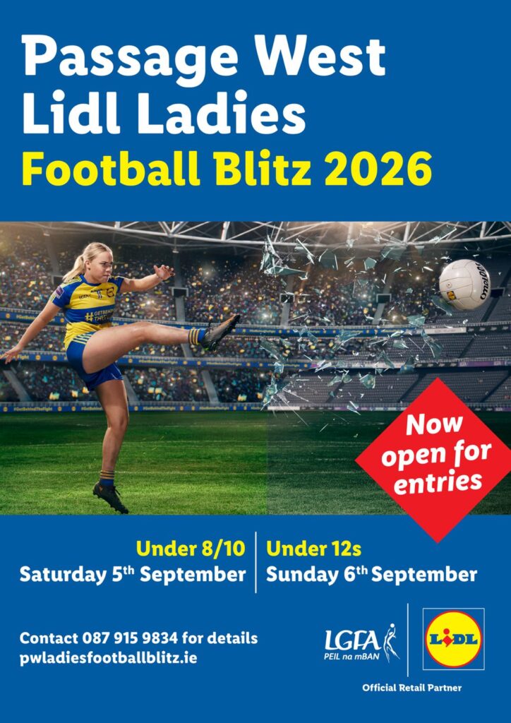 Really sorry to tell you this but the Passage West Ladies football under 8s,10s and under 12 blitz won’t be going ahead this year due to Covid and club pitch development. This is the second year under 8s,10s and under 12 blitz won’t be going ahead. So much work goes into running the blitz that it hurts that we can’t go ahead with the blitz and put a smile on your club members faces. We promise if all is good next year 2022 we in Passage West will put on a bigger show for you and your club to remember if you choose to attend. We hope we will see you all next year. God bless and take care. Stay safe